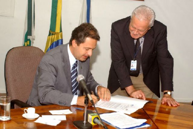 Em solenidade realizada na sede do CNPq na manhã desta quarta-feira(2), em Brasília, o ministro da Ciência e Tecnologia Eduardo Campos, e o presidente do CNPq, Erney Camargo, lançaram o edital 2005/2008 do Programa Institutos do Milênio. O edital prevê investimentos da ordem de R$ 90 milhões nos próximos três anos, destinados a redes de pesquisa no país com excelência reconhecida. Foto: Carlos Cruz